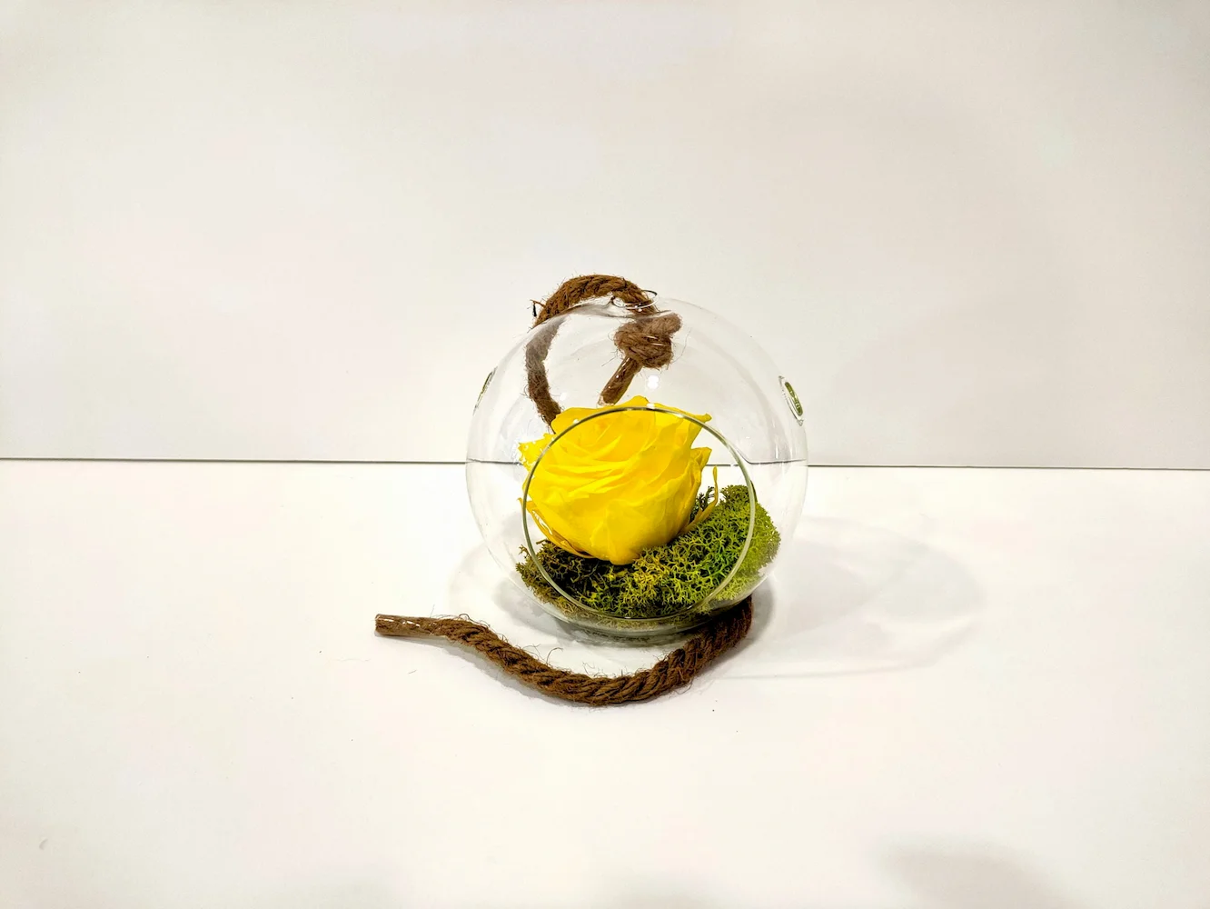 1 Forever Rose κίτρινο σε στρογγυλή γυάλα
