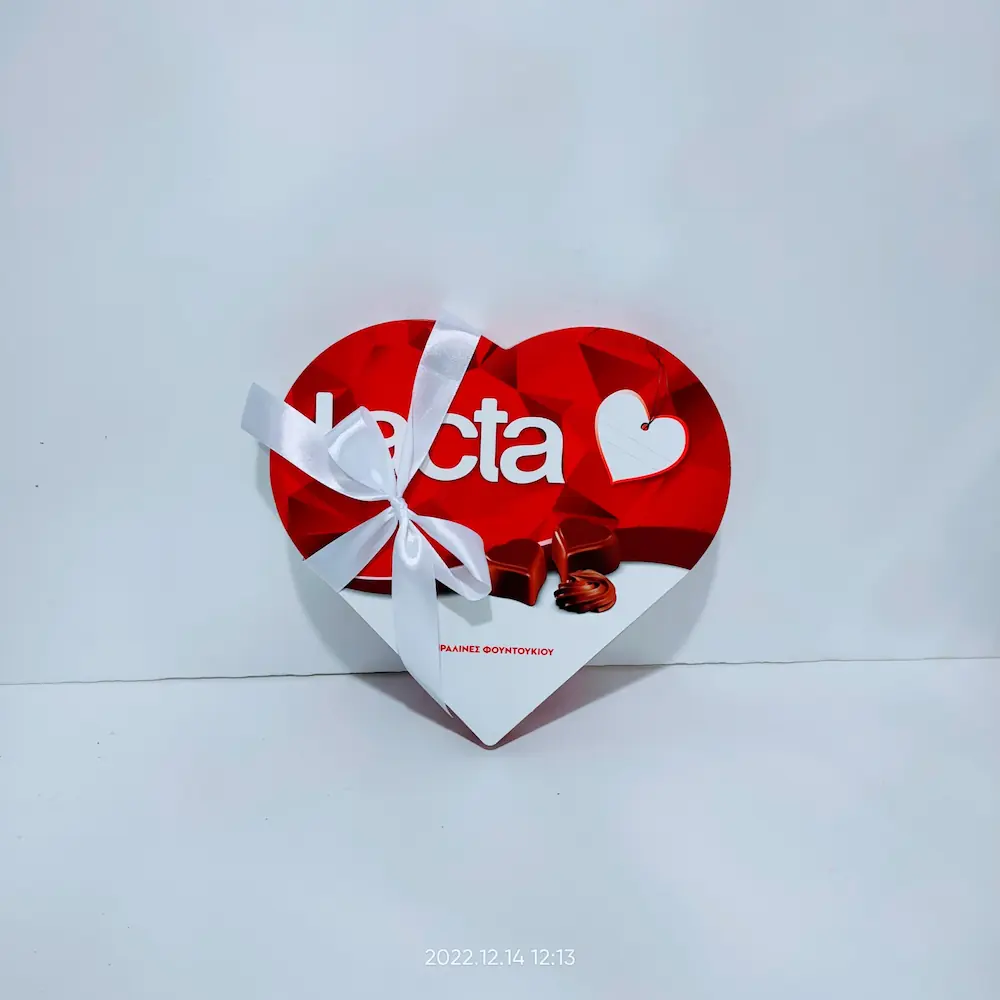 1 Lacta καρδιά που κρύβει μέσα της 30 μικρά σοκολατάκια σε σχήμα καρδίας.