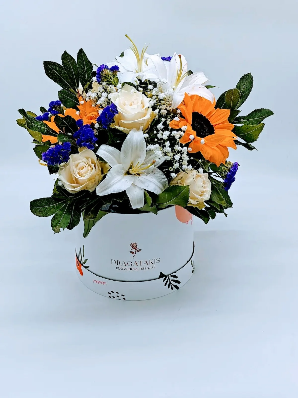 Το ανθοπωλείο μας σας προτείνει μια υπέροχη ανθοσύνθεση με τριαντάφυλλα, ηλιοτρόπια και λίλιουμ τοποθετημένα μια πολυτελέστατη καπελιέρα σε λευκό χρώμα. Ιδανικό δώρο για εσάς που θέλετε ένα ξεχωριστό δώρο που θα εντυπωσιάσει ευχάριστα τον παραλήπτη.