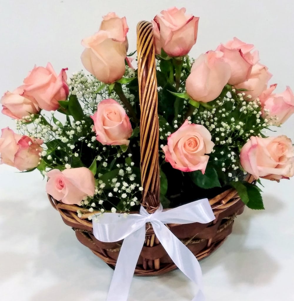 Το ανθοπωλείο μας σας προτείνει μια υπέροχη ανθοσύνθεση με ολόφρεσκα ροζ τριαντάφυλλα και γυψοφίλη σε πλεκτό ξύλινο πολυτελές καλάθι. Ιδανικό δώρο για εσάς που δεν συμβιβάζεστε με κάτι μικρό και θέλετε εντυπωσιάσετε!