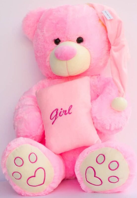 Λούτρινος Αρκούδος ροζ 50cm για νεογένητο κοριτσάκι