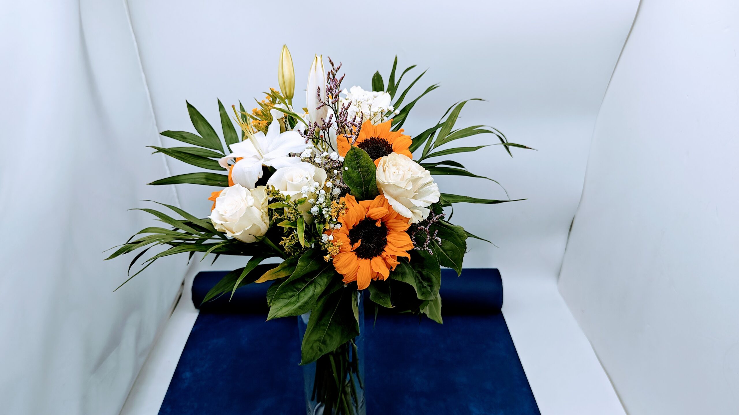 Το ανθοπωλείο μας σας προτείνει ένα μπουκέτο με ηλίανθους, λίλιουμ και τριαντάφυλλα.