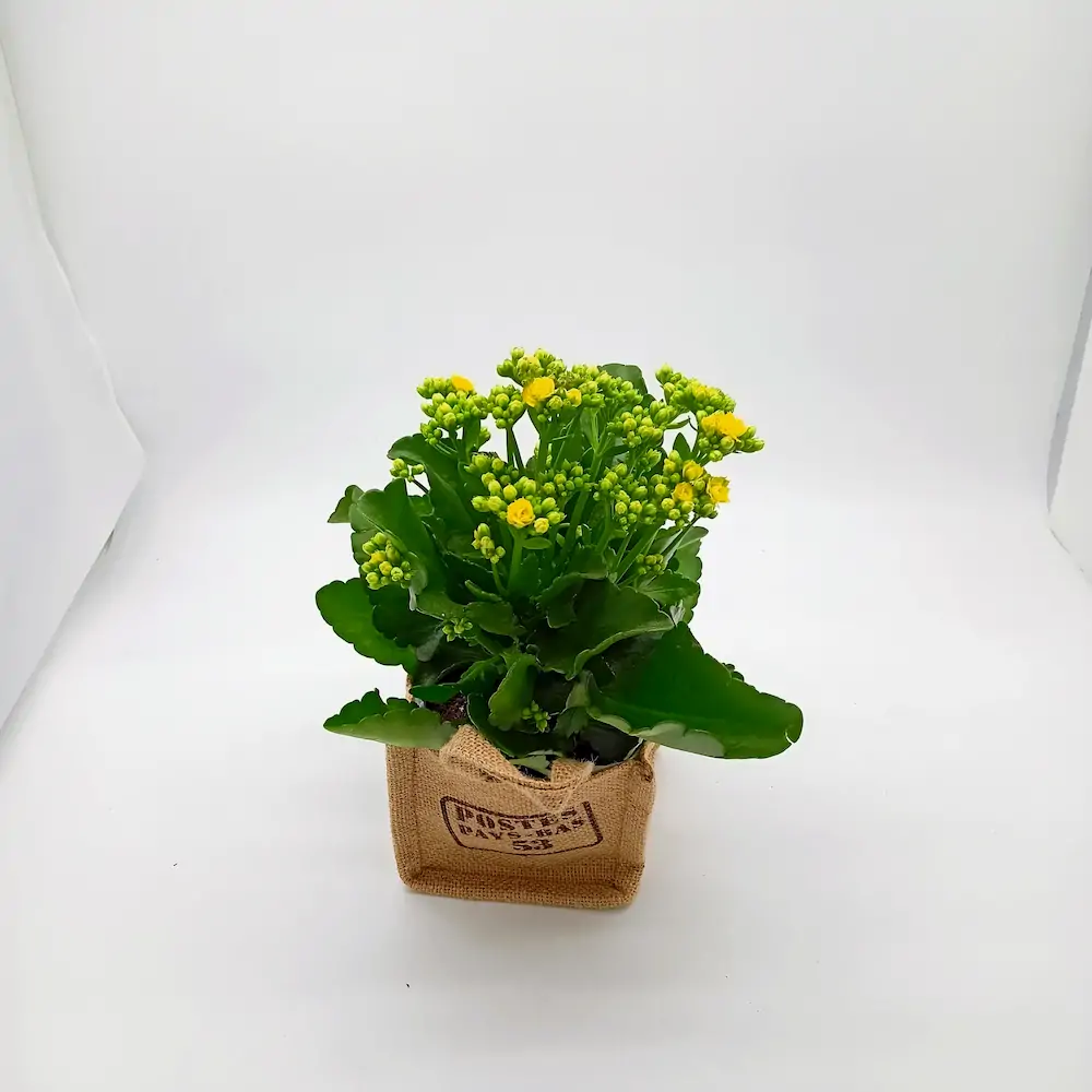 Καλαγχόη κίτρινη σε τσαντάκι από λινάτσα