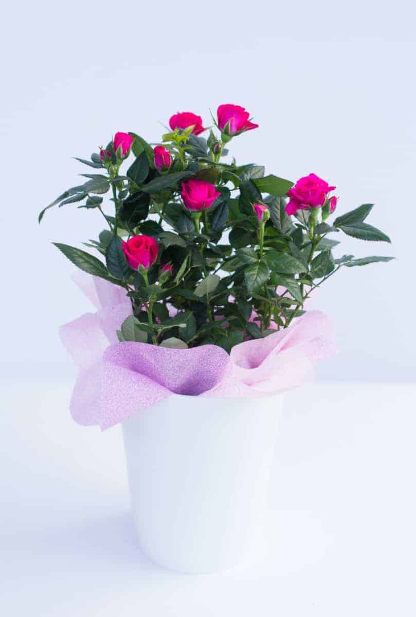Τριανταφυλλιά ροζ σε κεραμική λευκή γλάστρα