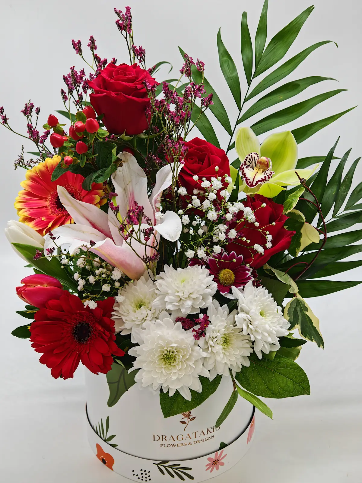 Η Vibrant Celebration είναι μια εντυπωσιακή ανθοσύνθεση σχεδιασμένη για να προσφέρει ζωντάνια και αισιοδοξία. Στο ανθοπωλείο Dragatakis Flowers & Designs δημιουργούμε συνθέσεις που συνδυάζουν την πολυτέλεια με τη φρεσκάδα των premium λουλουδιών.